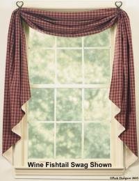 Product Description : The Sturbridge Black Fishtail Swags are 145" long and 25" wide. Sometimes called a window scarf, the swags are designed to drape around your windows to provide an elegant country window treatment. The traditional Sturbridge Black and tan check pattern p