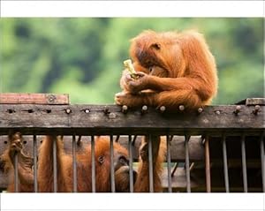 Product Description : Size: x8 Printx8 Print, Sumatran Orangutan - a young one is sitting on top of a cage which holds an. SAS- Sumatran Orangutan - a young one is sitting on top of a cage which holds an adult one captive. Gunung-Leuser National Park, Sumatra, Indonesia Pongo abelii The young one is holding a banana which it intends to stick through the bars to feed the captivated one. The captivated one strains to the top of the cage to make contact with the young one. It