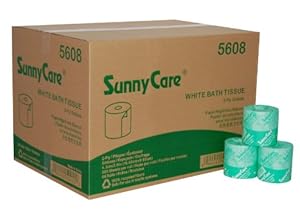 Product DescriptionSunnyCare #5608 Two-Ply Bathroom Tissue Sheets Size: 4.3in x 3.8in 500 sheets/roll; 24 rolls/bag ; 4 bags/case, 96rolls/case 100% recycled fibers safe for ues in septic systems