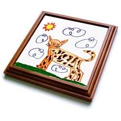 Product Description : Size: 8x8 Trivet with 6x6 ceramic tileCat Trivet is measuring 8w x 8h x .75d. Made of solid wood with padding on back that protects your furniture. Framed trivet comes with 6w x 6h ceramic gloss tile attached to the wood frame.