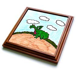 Product Description : Size: 8x8 Trivet with 6x6 ceramic tileDinosaur Trivet is measuring 8w x 8h x .75d. Made of solid wood with padding on back that protects your furniture. Framed trivet comes with 6w x 6h ceramic gloss tile attached to the wood frame.