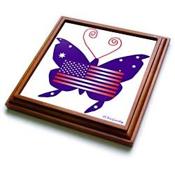Product Description : Size: 8x8 Trivet with 6x6 ceramic tileAmerican Butterfly I Trivet is measuring 8w x 8h x .75d. Made of solid wood with padding on back that protects your furniture. Framed trivet comes with 6w x 6h ceramic gloss tile attached to the wood frame.