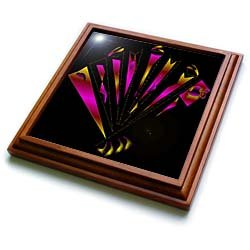 Product Description : : Size: 8x8 Trivet with 6x6 ceramic tileYellow Pink Fan Trivet is measuring 8w x 8h x .75d. Made of solid wood with padding on back that protects your furniture. Framed trivet comes with 6w x 6h ceramic gloss tile attached to the wood frame.