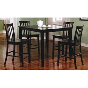 Product Description : 150231BLK Features: -Casual style.-Clean lines, smooth straight edges, square tapered legs.-Smooth tops with straight edges. Includes: -Set includes 1 dining table, 4 chairs.-Set includes 1 dining table and 4 chairs. Construction: -Constructed of wood solids and veneers. Color/Finish: -Black finish. Dimensions: -Dining table: 36'' H x 42'' W x 42'' D.-Chair: 40'' H x 16.5'' W x 20'' D.