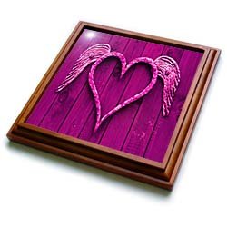 Product Description : Size: 8x8 Trivet with 6x6 ceramic tilePink Heart With Wings Trivet is measuring 8w x 8h x .75d. Made of solid wood with padding on back that protects your furniture. Framed trivet comes with 6w x 6h ceramic gloss tile attached to the wood frame.